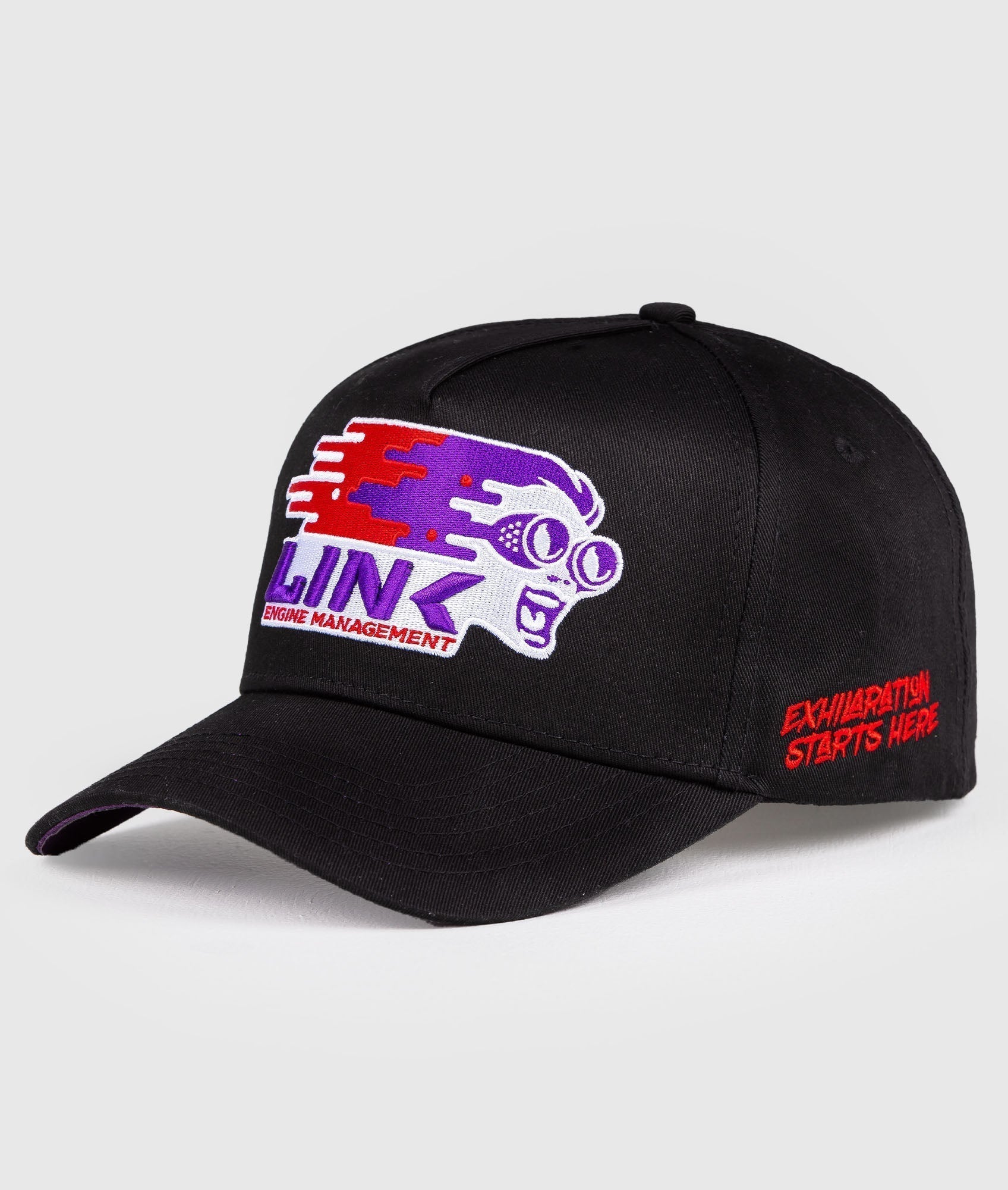 This A-Frame cap features a bold Link logo on the front and their "Exhilaration starts here" slogan on the side with custom inside ribbing.