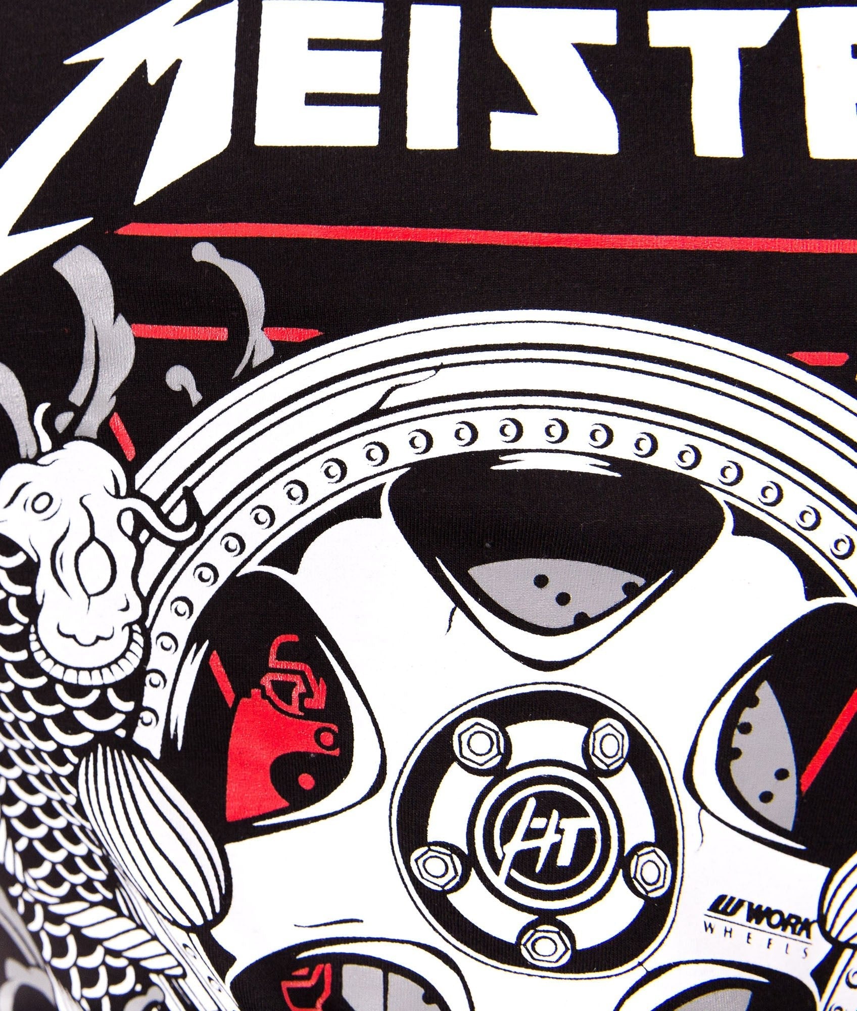 Printed on an ultra-premium blend, featuring the sough after Work Meister wheel and koi on the back and a pocket tee style print on the front with the HardTuned Dot design and an added koi to tie it all in.