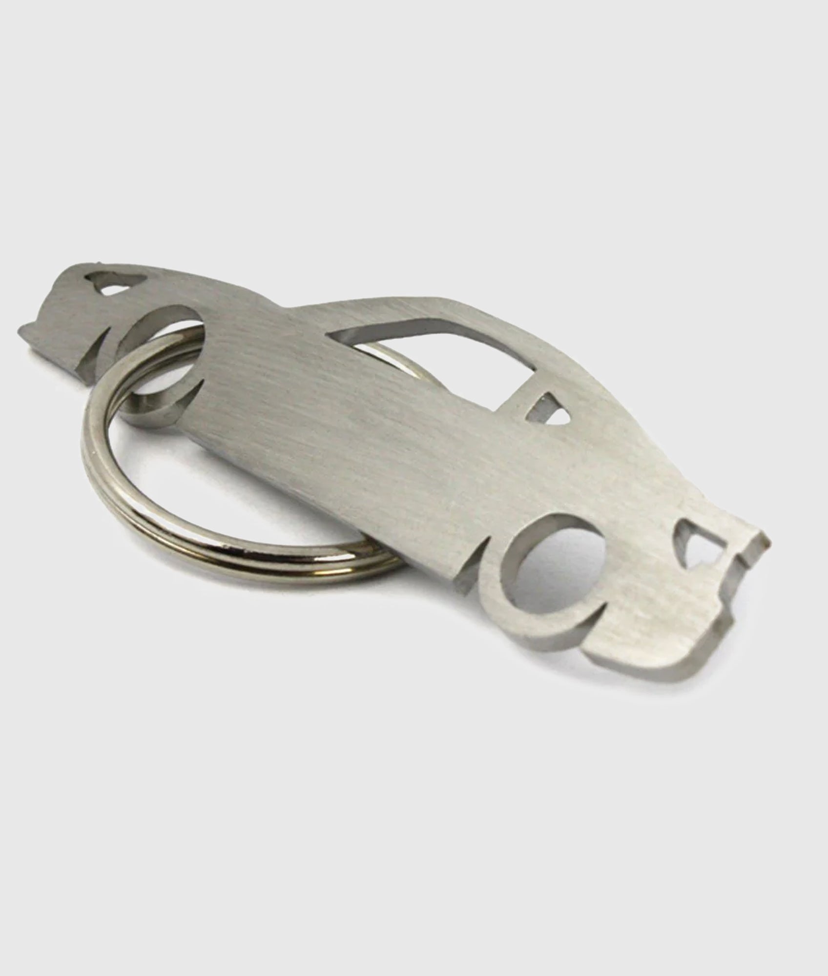 Stainless steel key ring with both sides polished using a brushed effect.