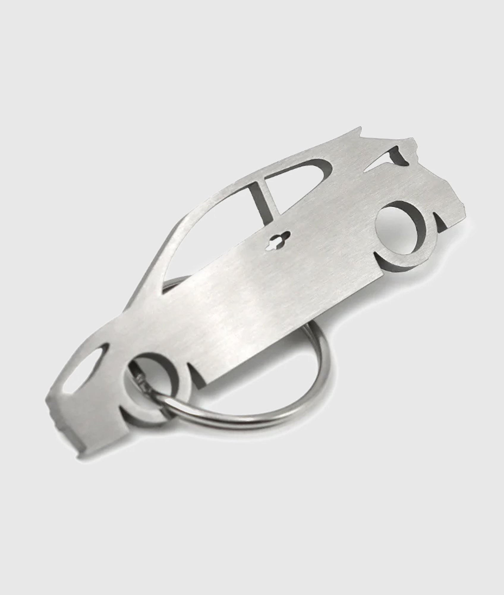 Stainless steel key ring with both sides polished using a brushed effect.