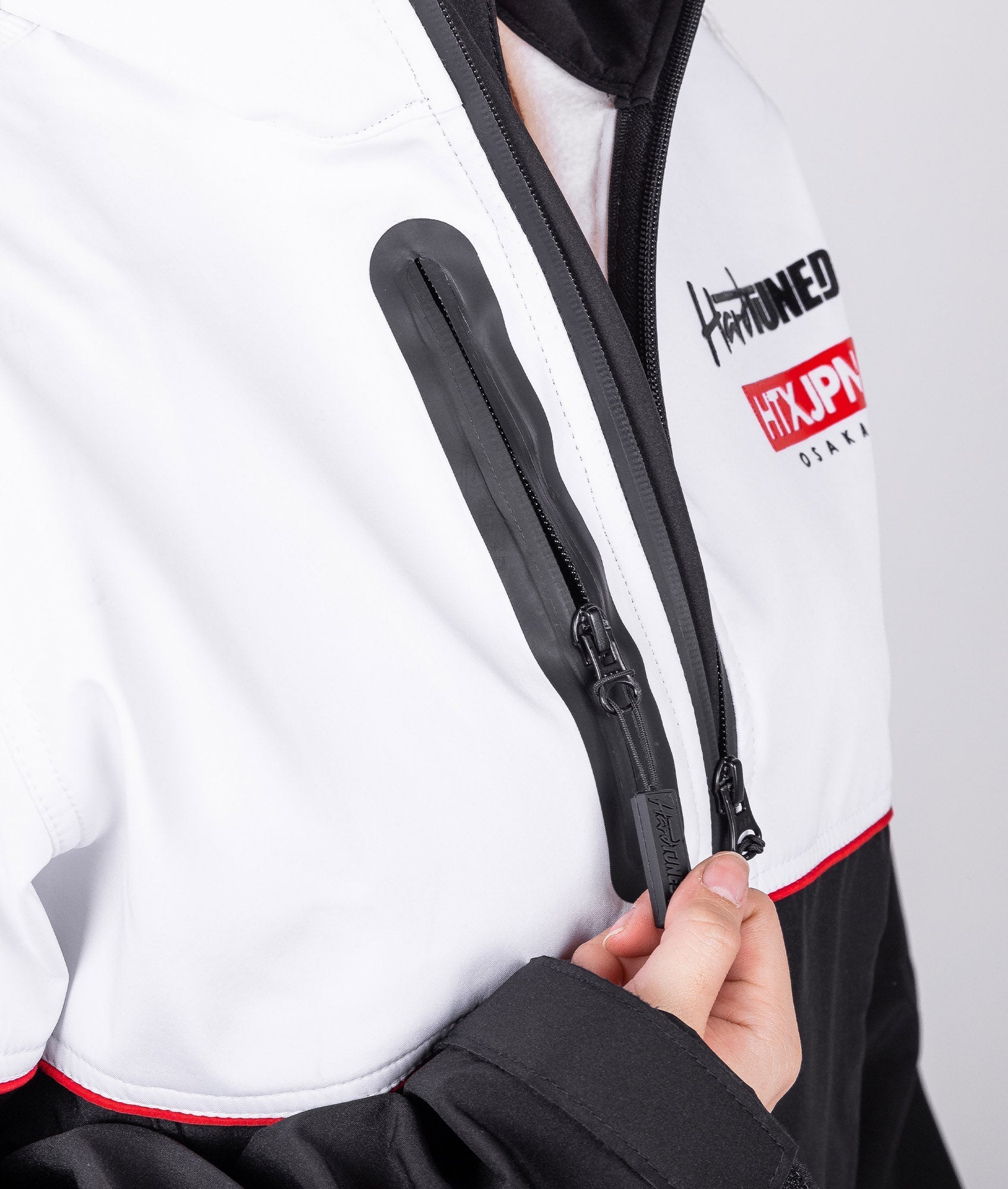 This jacket is made from a water-resistant, and comfortable material with a soft fleece inner lining for warmth. Includes three large, fleece-lined pockets with custom-branded rubber tags with YKK zips.