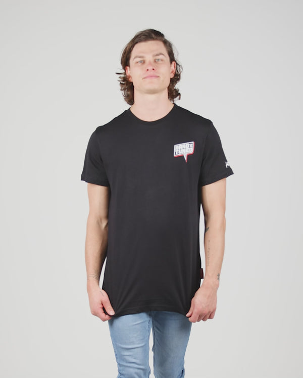 Printed in a bold cell block style with premium plastisol flex inks and laid on a Hardtuned hand-tailored premium combed cotton t-shirt, with 2% elastin for improved fit and comfort.