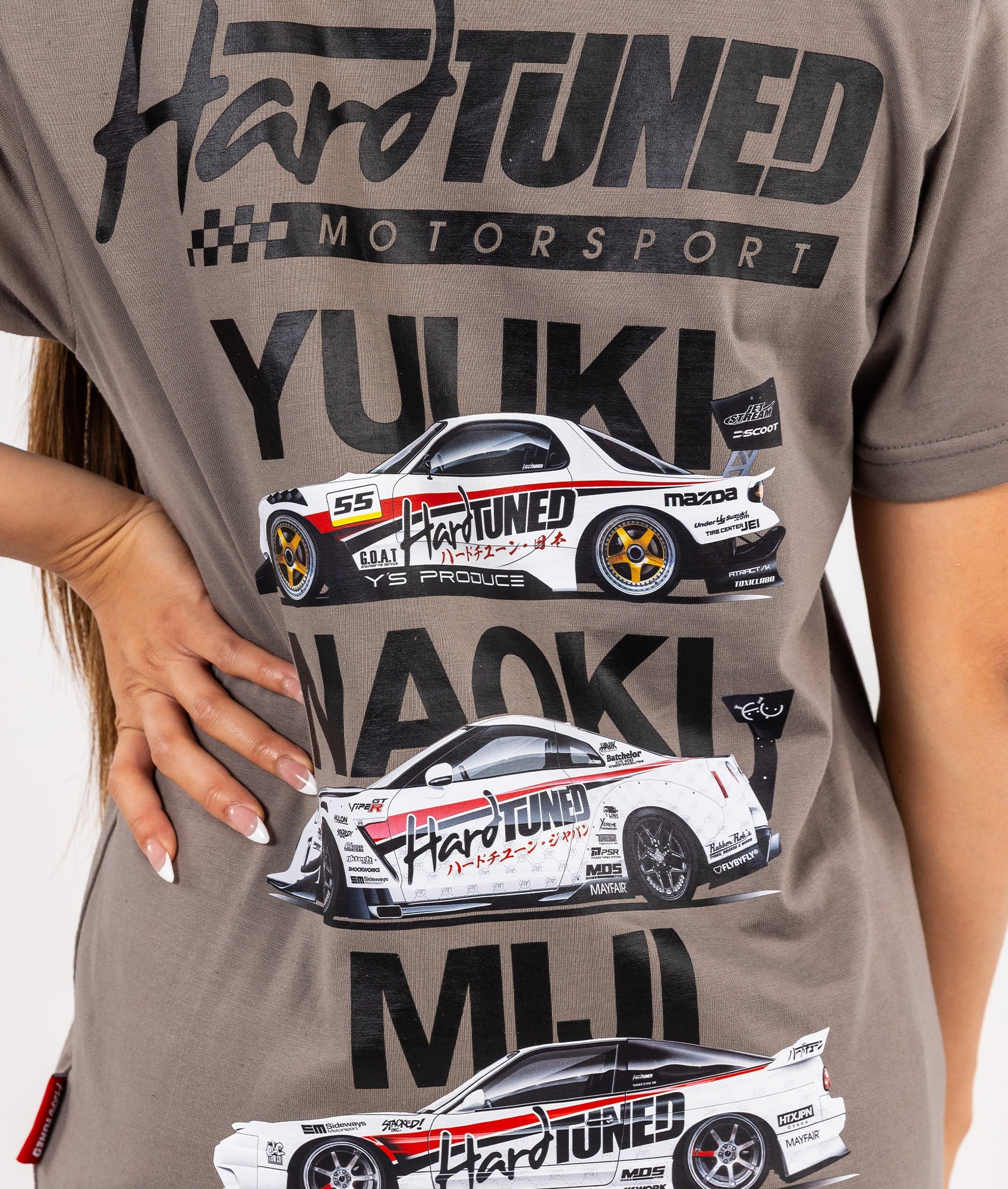 Featuring Hardtuned's three powerhouse drivers - Yuuki Kamakura, Naoki Nakamura, and Miji Takagi, these tee were a sellout at the event. Now's your chance to feel a part of this iconic team.